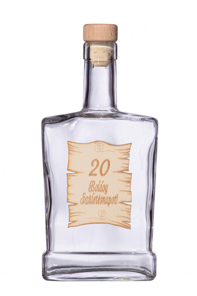 gyártású víztiszta palack, amely kiválóan alkalmas borok, desztillált italok,